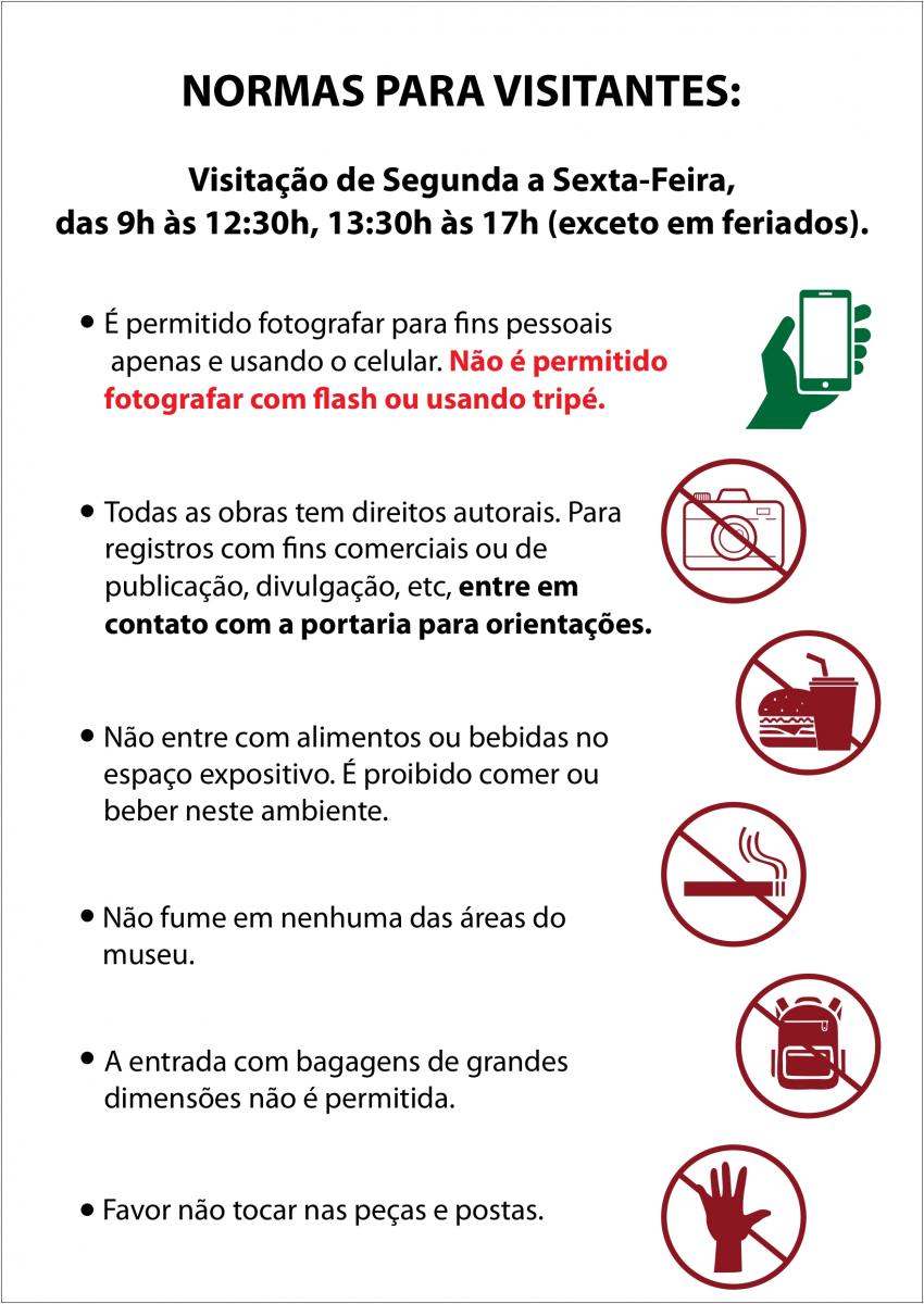 Não entre com alimentos ou bebidas no espaço expositivo.